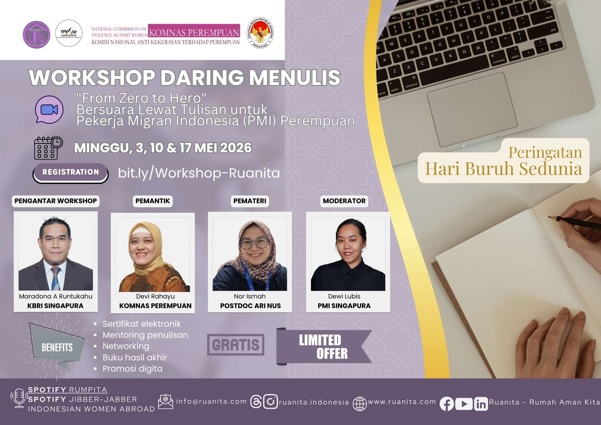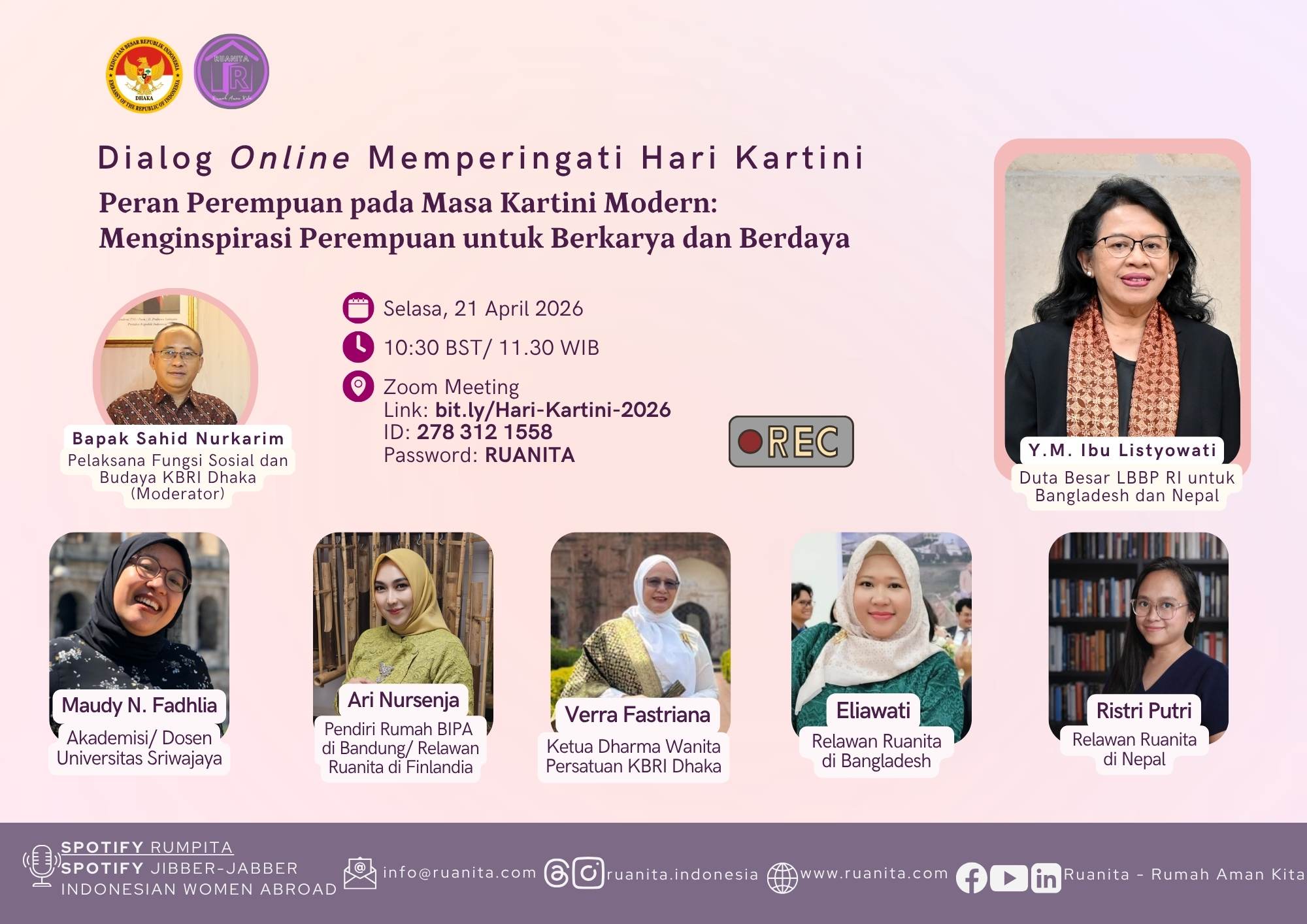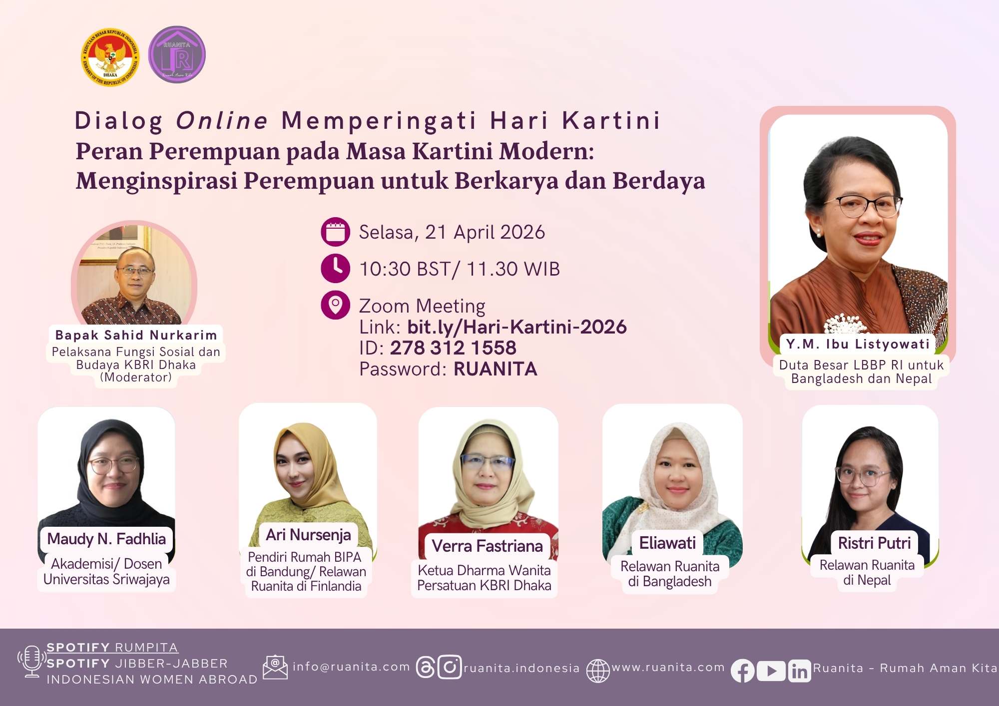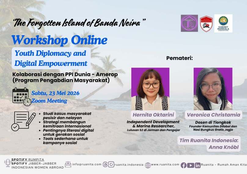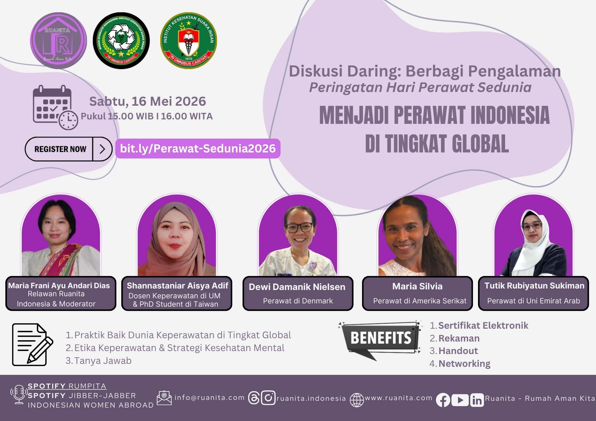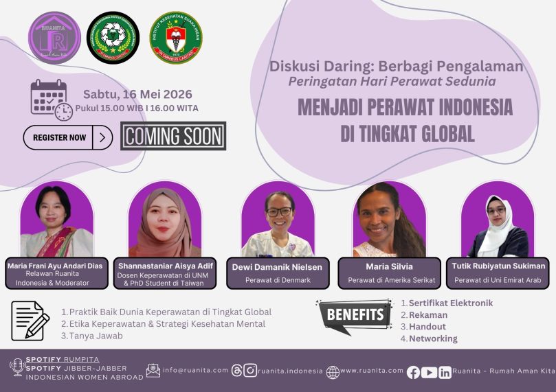 Dublin, 14 Maret – Peringatan Hari Perempuan Internasional menjadi momentum penting bagi Ruanita Indonesia untuk menyelenggarakan berbagai ruang digital untuk berbagi pengetahuan dan pengalaman perempuan. Salah satunya, melalui komunitas praktisi kesehatan mental Indonesia di mancanegara, Ruanita menggelar program Knowledge Sharing…