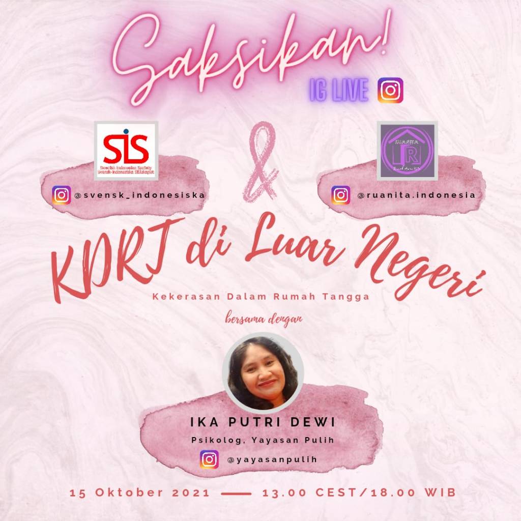 SWEDIA – KBRI Stockholm bekerja sama dengan Swedish Indonesian Society (SIS), Adakita Forum dan RUANITA menggelar webinar bertema: Kekerasan Dalam Rumah Tangga (KDRT) pada Sabtu (23/10) yang digelar secara virtual. Acara ini dibuka resmi oleh Dubes RI untuk Kerajaan Swedia merangkap Republik Latvia, Kamapradipta Isnomo.