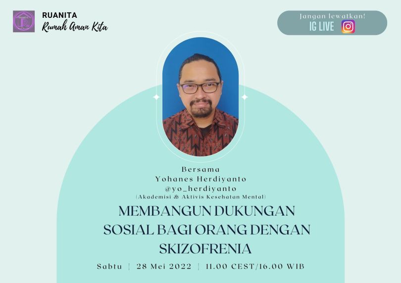 NORWEGIA – Dalam rangka Hari Skizofrenia Seduia yang jatuh tiap 24 Mei, Sabtu (28/5) Ruanita kembali menggelar diskusi virtual IG Live dengan mengusung tema ‘Membangun Dukungan Sosial Bagi Orang dengan Skizofrenia’. Lewat akun @ruanita.indonesia, Atika sebagai pemandu diskusi dari tim Ruanita mengundang Yohanes Herdiyanto selaku akademisi & aktivis kesehatan mental untuk berbagi perspektif baru dalam membangun solidaritas bagi mereka yang hidup dengan skizofrenia.