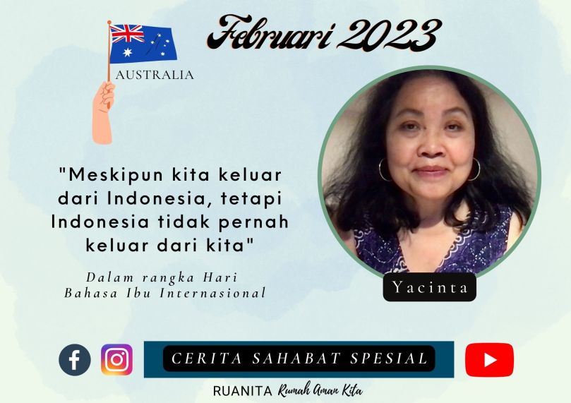 Di bulan Februari 2023, kami mengundang Yacinta Kurniasih yang tinggal di Australia untuk berbagi pengetahuan dan pengalamannya yang telah bergelut dalam bidang Akademisi terutama Bahasa Indonesia untuk Penutur Asing (BIPA) di Australia. Setelah lebih dari 20 tahun tinggal di Australia, Yacinta menyadari bahwa Indonesia memiliki keragamaan bahasa yang tidak ternilai dan tentu saja tidak dimiliki oleh banyak negara lainnya di dunia.