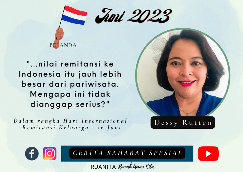 Program Cerita Sahabat Spesial Episode Juni 2023 mengangkat tema remitansi keluarga di Indonesia yang memang dirayakan secara internasional pada 16 Juni setiap tahun. Pada perayaan International Day of Family Remittances RUANITA mengundang Senior Economist, Senior Banker and Business Woman yang kini menetap di Belanda. Dia adalah Dessy Rutten yang telah 25 tahun tinggal di Eropa dan ahli dalam urusan ekonomi perbankan.