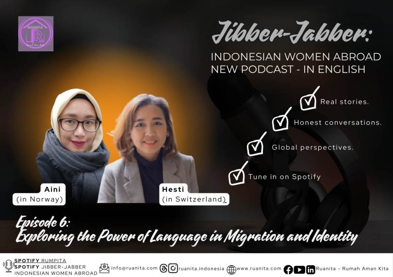 Memperingati Hari Kartini pada 21 April ini, Ruanita Indonesia menghadirkan program audio podcast spesial berbahasa Inggris, Jibber-jabber Indonesian Women Abroad episode ke-6. Kita akan mendengarkan bagaimana perjalanan dari ruang kelas di Chiang Mai hingga ruang rapat perusahaan teknologi di Zurich, dari Hesti Aryani dalam belajar memahami dunia melalui bahasa.