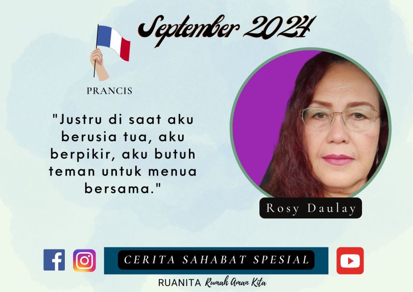 Dalam program Cerita Sahabat Spesial episode September 2024 kali ini, kami mengundang sahabat Ruanita yang tinggal di Prancis. Dia adalah Rosy Daulay yang pernah tinggal lebih dari 14 tahun di Denmark dan sekarang pindah setelah pernikahan keduanya.