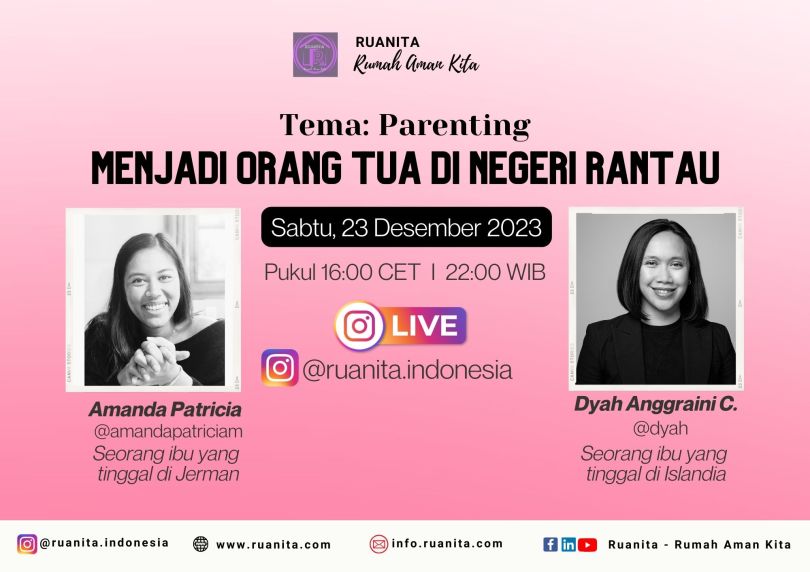 Untuk membahas lebih dalam, kami mengundang sahabat Ruanita yakni Ranindra Anandita, seorang Psikolog yang bermukim di Prancis dan Alfa Kurnia, seorang Mom Blogger yang tinggal di Brunei Darussalam.