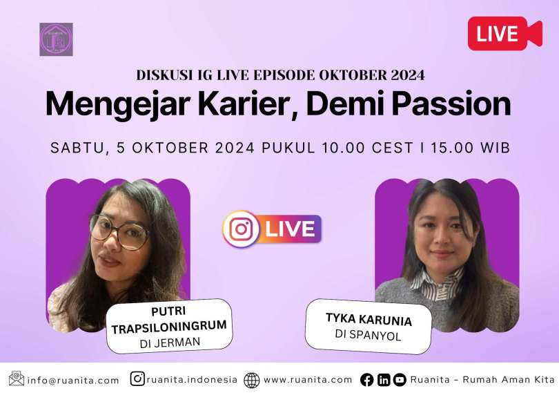 Diskusi IG Live lewat akun instagram ruanita.indonesia yang dipandu oleh Rida Luthfiana Zahra yang baru saja menyelesaikan studi S2 di Jerman.
