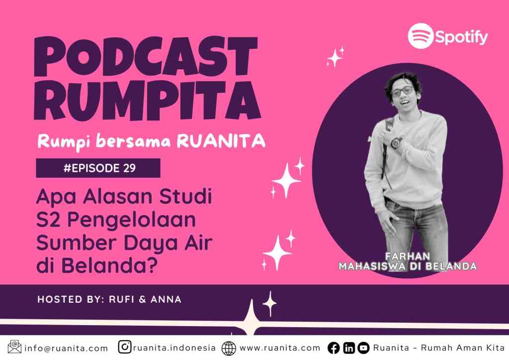 Dalam program Podcast RUMPITA di bulan September 2024, kami mengundang sahabat Ruanita yang tinggal di Belanda untuk membahas pengalaman tinggal di Belanda dan rencana usai studi.
