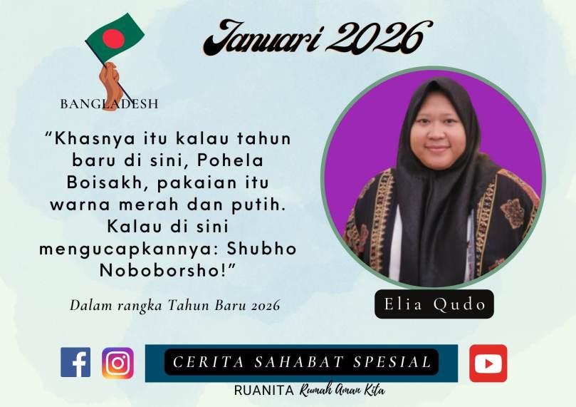 Dalam program cerita sahabat spesial yang rilis setiap bulan, Ruanita Indonesia mengundang relawan Ruanita yang tinggal di Bangladesh tentang bagaimana perayaan tahun baru di sana.